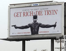 21 plakatów reklamujących film „Get Rich or Die Trying” znika z ulic Filadelfii. Mieszkańcom nie podoba się Cenciak mierzący do nich z pistoletu.