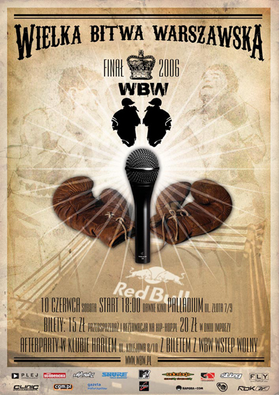 WBW 2006 to już 4 edycja turnieju. W tym roku walki eliminacyjne zaplanowane zostały aż w 6 miastach. Mistrzowie rymowanej improwizacji gościli w Warszawie, Łodzi, Gdańsku, Poznaniu, Rzeszowie oraz Białymstoku. Finałowa Wielka Bitwa Warszawska, w której udział weźmie 8 najmocniejszych zawodników wyłonionych w eliminacjach, odbędzie się 10 czerwca w warszawskim klubie Palladium.