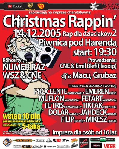 Christmas Rappin’ – Rap dla dzieciaków 2″ odbędzie się 14 grudnia 2005 czyli tuż przed Świętami Bożego Narodzenia, w warszawskim klubie „Piwnica pod Harendą”.