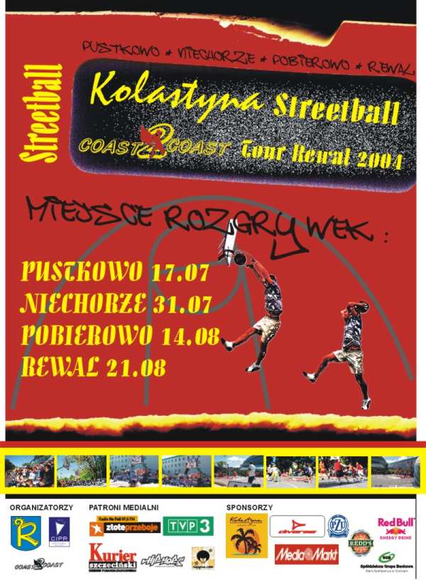 Lipiec i sierpień 2004 będzie stał pod znakiem streetballa. Począwszy od 17 lipca, co dwa tygodnie, w różnych miejsowościach nadmorskich odbędą się turnieje koszykówki ulicznej, pod nazwą Kolastyna Streetball Coast2Coast Tour 2004.