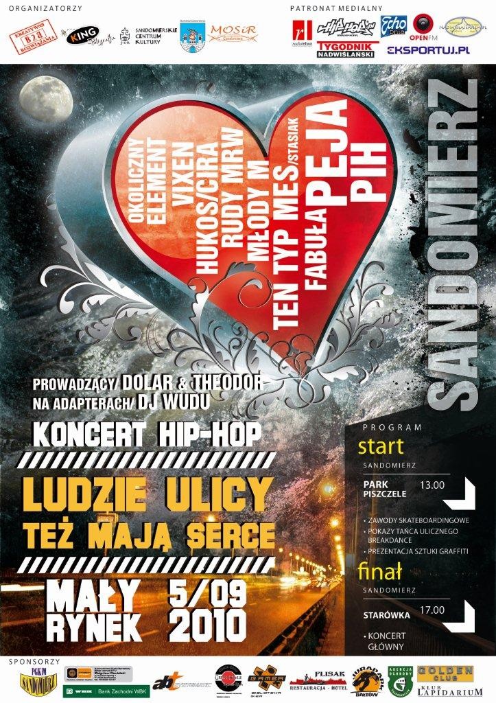 Drugą oficjalną częścią wydarzenia „Ludzie ulicy też mają serce†będzie koncert najpopularniejszych polskich raperów, poprzedzony występami miejscowych składów hip-hopowych.