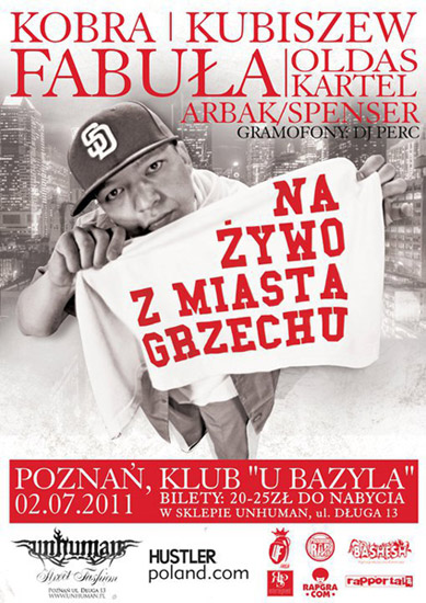 Przypominamy także o spotkaniu z wszystkimi artystami, którzy tego wieczoru wystąpią. Zapraszamy w dzień koncertu – 2.07.2011 do sklepu UNHUMAN w godzinach 16.00 – 17.30. Będzie okazja żeby kupić płytę, zgarnąć autograf i strzelić sobie fotę. W trakcie trwania spotkania będzie można kupić bilet w cenie z przedsprzedaży – 20 zł.