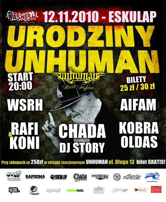 Na imprezę zapraszają Sklep Unhuman oraz Agencja Muzyczno-Eventowa Bashesh !