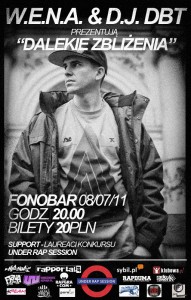 w imprezie W.E.N.A. & DJ DBT „Dalekie zbliżenia” w dniu 8.07.2011, która odbędzie się w klubie FonoBar przy ulicy Wawelskiej 5 w Warszawie.