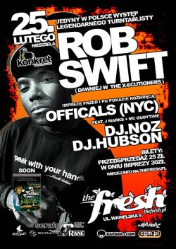Towarzyszyć mu będzie nowojorska grupa Officals. Dodatkowo zaprezentują się rezydenci The Fresh – DJ.Noz oraz DJ.Hubson. Dzięki temu, że oprócz pokazu turntablizmu Rob Swift zagra gorący klubowy set, jego występ będzie prawdziwą gratka zarówno dla fanów beatjugglingu i innych gramofonowych sztuczek, jaki i dla imprezowiczów chcących zobaczyć jak rozkręca się imprezy hip-hopowe w Nowym Jorku.