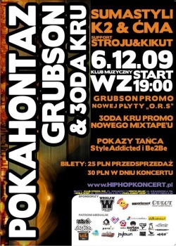 Już 6 grudnia na Mikołajki, odbędzie się koncert, który zatrzęsie całym Wrocławiem. W jednym miejscu w klubie WZ zagrają: Pokahontaz, GrubSon & 3oda Kru, SumaStyli, K2&Ćma. Imprezę rozpoczną pokazy tańca formacji StyleAddicted oraz Be2Be. Koncert ten będzie promował nowy mixtape 3ody Kru, który ukaże się 4 grudnia oraz nie dawno wydaną, płytę GrubSona pt. „O.R.S” . Swój nowy materiał z płyty „De Integro” zaprezentuje również SumaStyli.