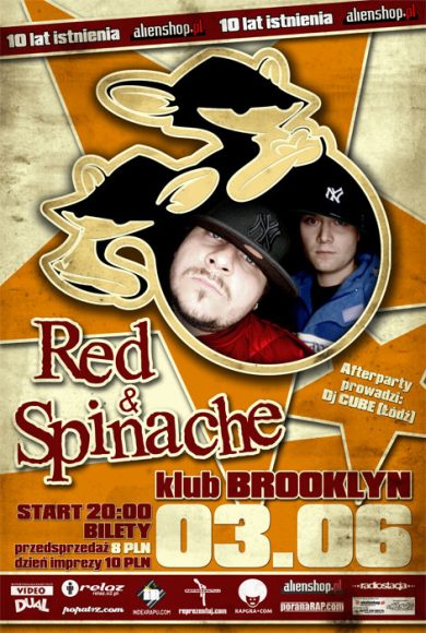 10 lat na rynku! To niezły wynik, jednak sklep Alien Shop nie jest zwykłym skate shopem jakich wiele. Od początku swojego istnienia wspiera regionalną scenę hiphopową. Niezliczone imprezy, koncerty, które wspierał finansowo, główny sponsor jedynej audycji hiphopowej w regionie – Index Rapu. Sponsoring artystów to tylko 3 przykłady potwierdzające wielki wkład w rozwój sceny muzycznej w Zielonej Górze i okolicach. Dlatego Sklep Alien Shop razem z Reprezentuj Entertainment z okazji 10 lat zaprasza na wielką imprezę urodzinową, na której zagra duet Red & Spinache, a gorące after party poprowadzi DJ Cube [Born To Roll / Łódź]. To będzie wielkie wydarzenie na wielką rocznice. Jednoczesnie zaczyna się kolejny etap w działalności sklepu. Razem z 10 urodzinami rusza oficjalna strona i sklep internetowy: alienshop.pl.