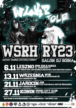Fala rapu z Poznania zalewa Wielkopolskę i wyrwie Was z jesiennej zadumy. Podczas trasy koncertowej WSRH i RY23 – WLKP Tour! artyści promować będą materiał ze sowich najnowszych albumów: „Unhuman Mixtape” oraz „Uliczny Flowklor”