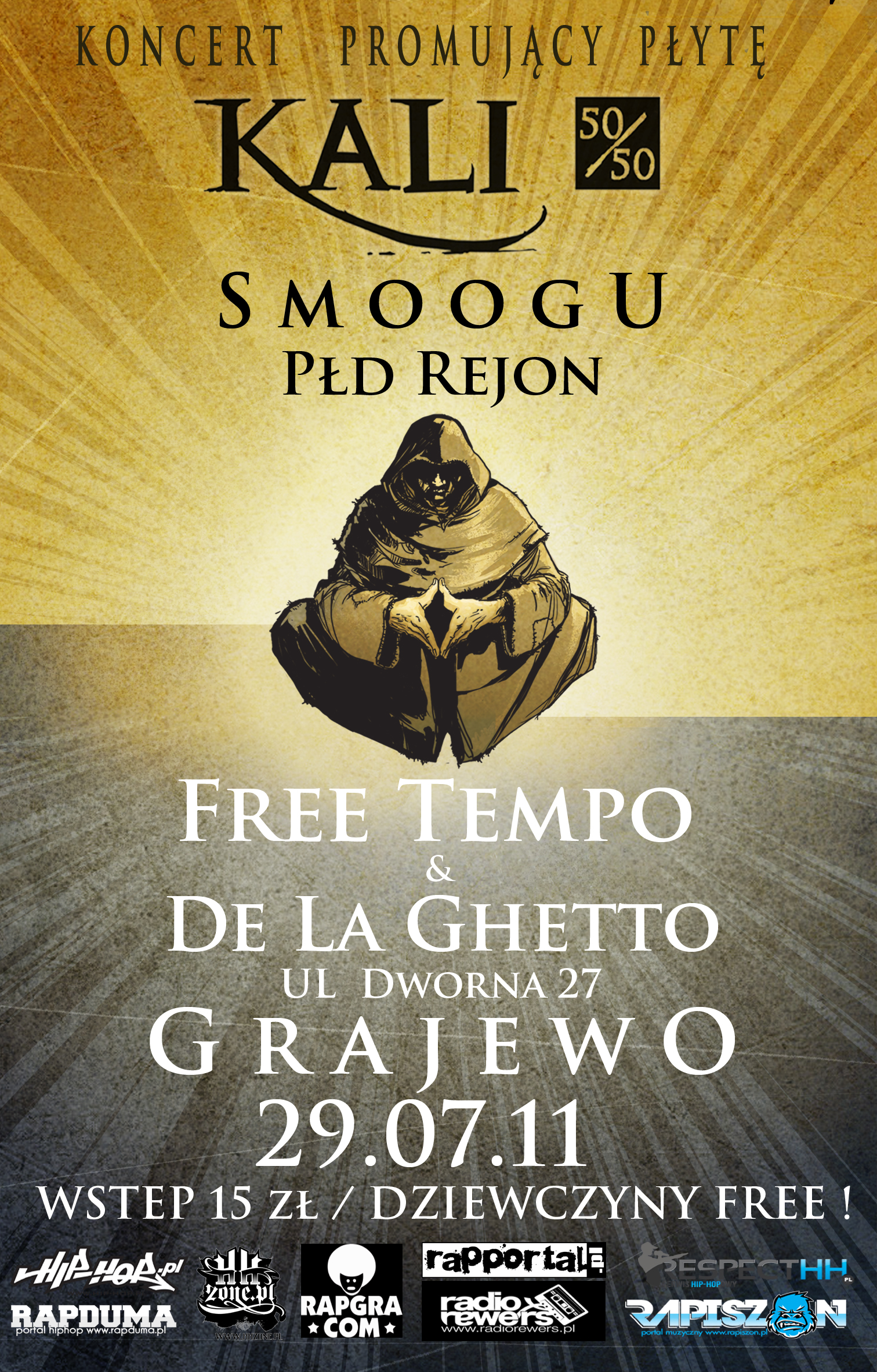 Klub Free Tempo & De La Ghetto oraz Ganja Mafia zaprasza na koncert Kaliego promujący solowy album 50 / 50. Impreza odbedzie sie 29 lipca w Grajewie w klubie Free Tempo & De La Ghetto przy ulicy Dwornej 27 .