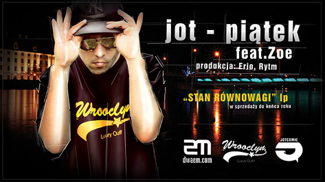 Kilka dni temu miała premiera pierwszego singla z nadchodzącej płyty Jota pt. „Piątek” z gościnnym udziałem Zoe. Utwór jest zapowiedzią albumu „Stan równowagi„, który objęliśmy patronatem. Płyta do końca roku trafi do sprzedaży nakładem Dwaem Music. Za produkcję utworu odpowiedzialny jest Erio oraz Rytm. Już niebawem kolejne informacje, pierwszy teledysk a po wydaniu płyty konkurs! Czekajcie cierpliwie. Zapraszamy do słuchania bo już niebawem piątek…
